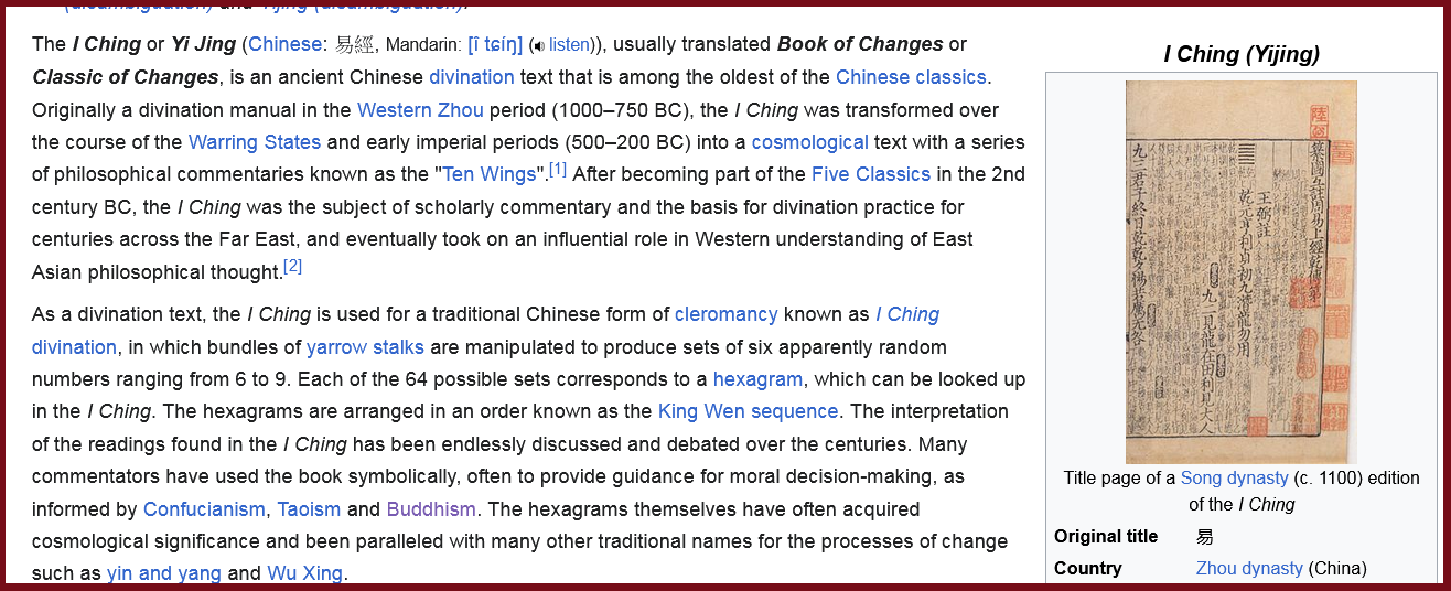 In that very interesting course I was exposed to the 'I Ching' (archived) ..