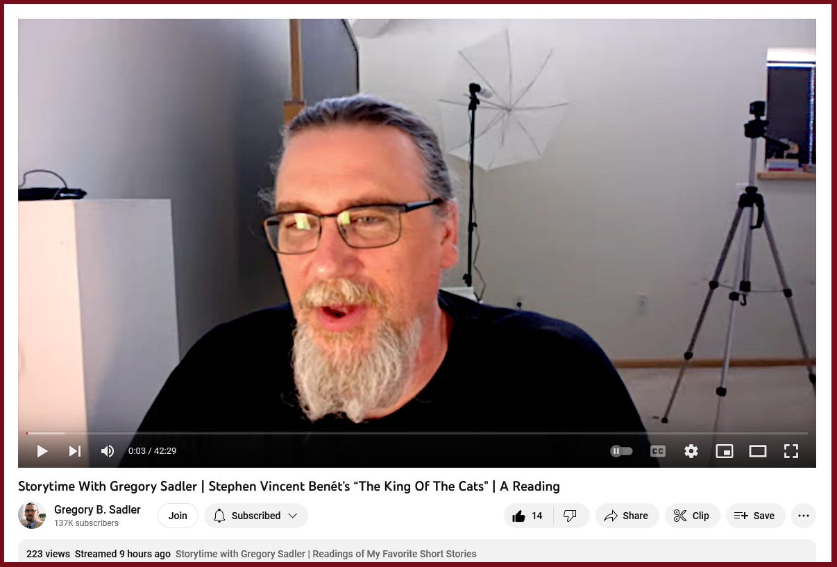 “Storytime With Gregory Sadler | Stephen Vincent Benét’s “The King Of The Cats" | A Reading”