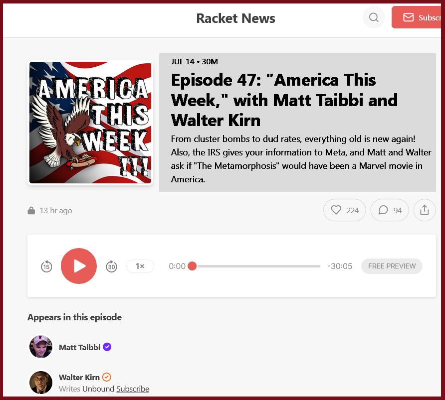 “Episode 47: "America This Week," with Matt Taibbi and Walter Kirn”