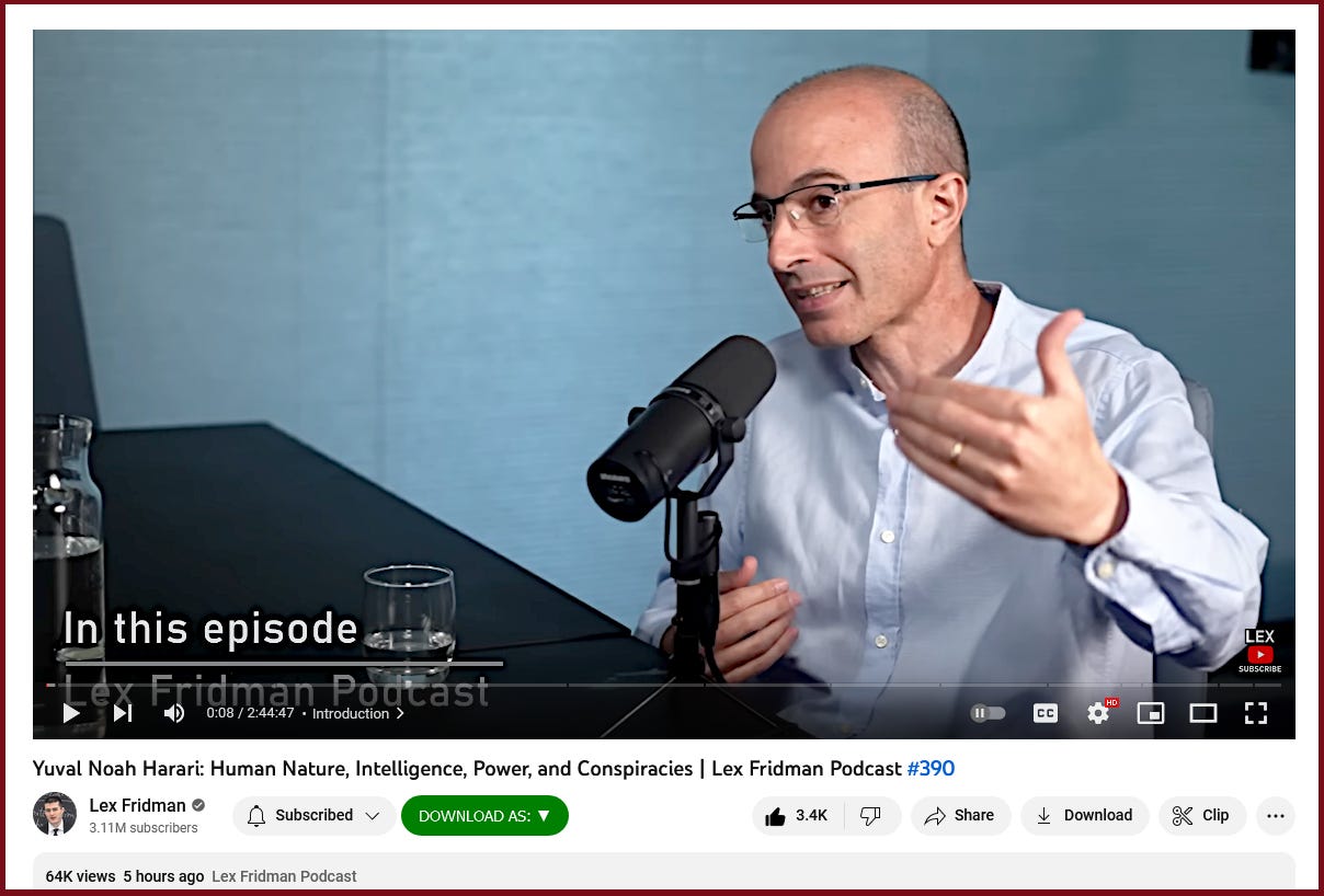 “Yuval Noah Harari: Human Nature, Intelligence, Power, and Conspiracies | Lex Fridman Podcast #390”