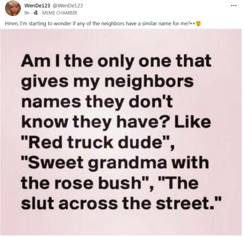 That the collision with a neighbor women who irrationally and willfully ignorant and further rejects all decent human intercourse as she is programmed by this Satanic World and in mind-raped and otherwise turned into a Curse to those who actually seek Truth and-or would Lovingly Help her, how this is an 'Exercise' in Charity and it a realization that there but by the grace of God go I and it was not many many years ago I called myself a Feminist and was so mind-F-ing warped and rationally-broken as to be – like her – a Curse on myself and others, although in different ways perhaps then what she displayed, but not outside of conception.