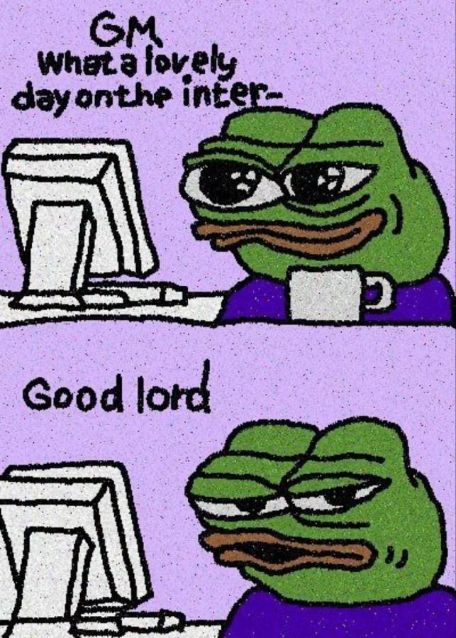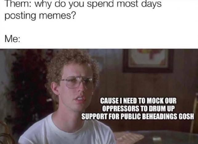 [Current popular Memes and Images - which reflect common thoughts of many - may be found on the SubStack version – Facebook Witches will/have punished my sharing of such.]