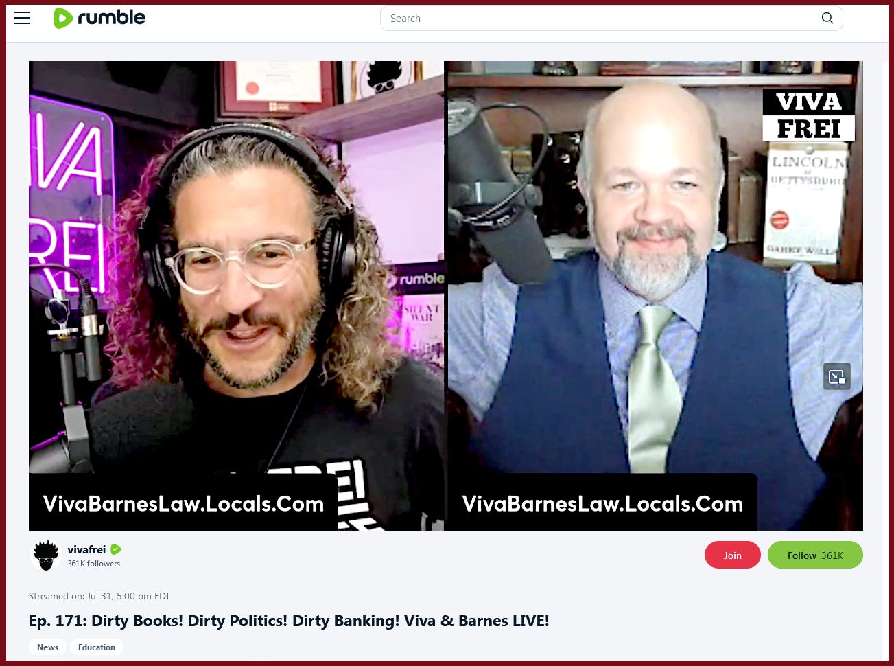 “Ep. 171: Dirty Books! Dirty Politics! Dirty Banking! Viva & Barnes LIVE!”