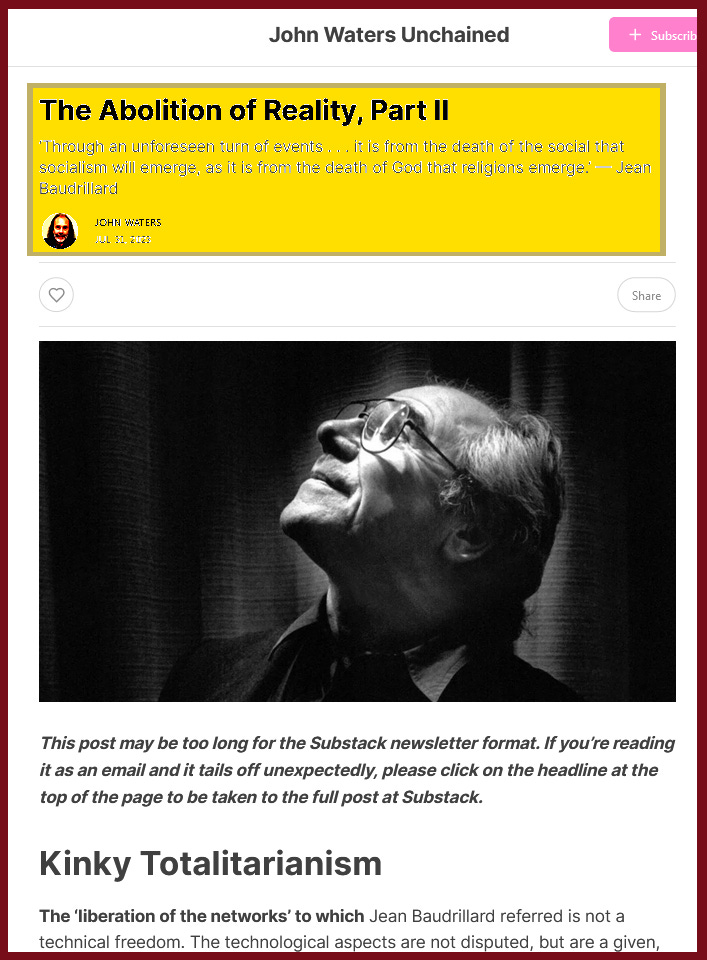 https://johnwaters.substack.com/p/the-abolition-of-reality-part-ii