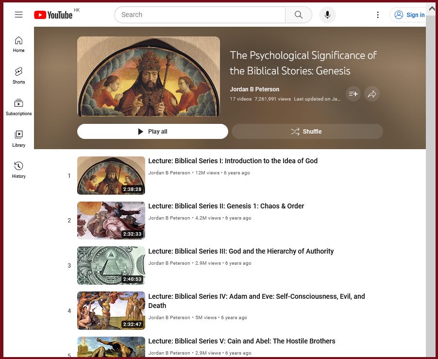 Again I have not watch this [yet] – his biblical talks he does alone is worth watching and found on his YouTube playlist 'The Psychological Significance of the Biblical Stories:',