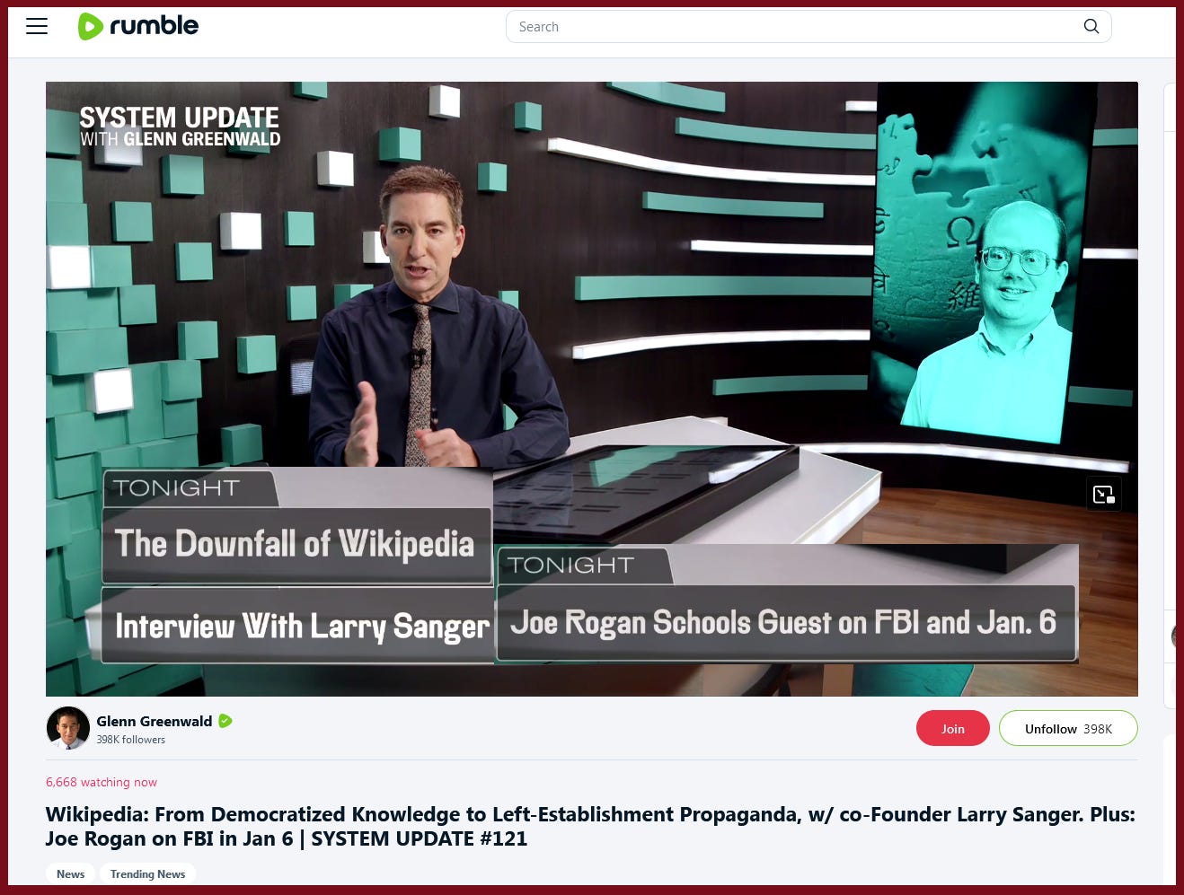 “Wikipedia: From Democratized Knowledge to Left-Establishment Propaganda, w/ co-Founder Larry Sanger. Plus: Joe Rogan on FBI in Jan 6 | SYSTEM UPDATE #121”