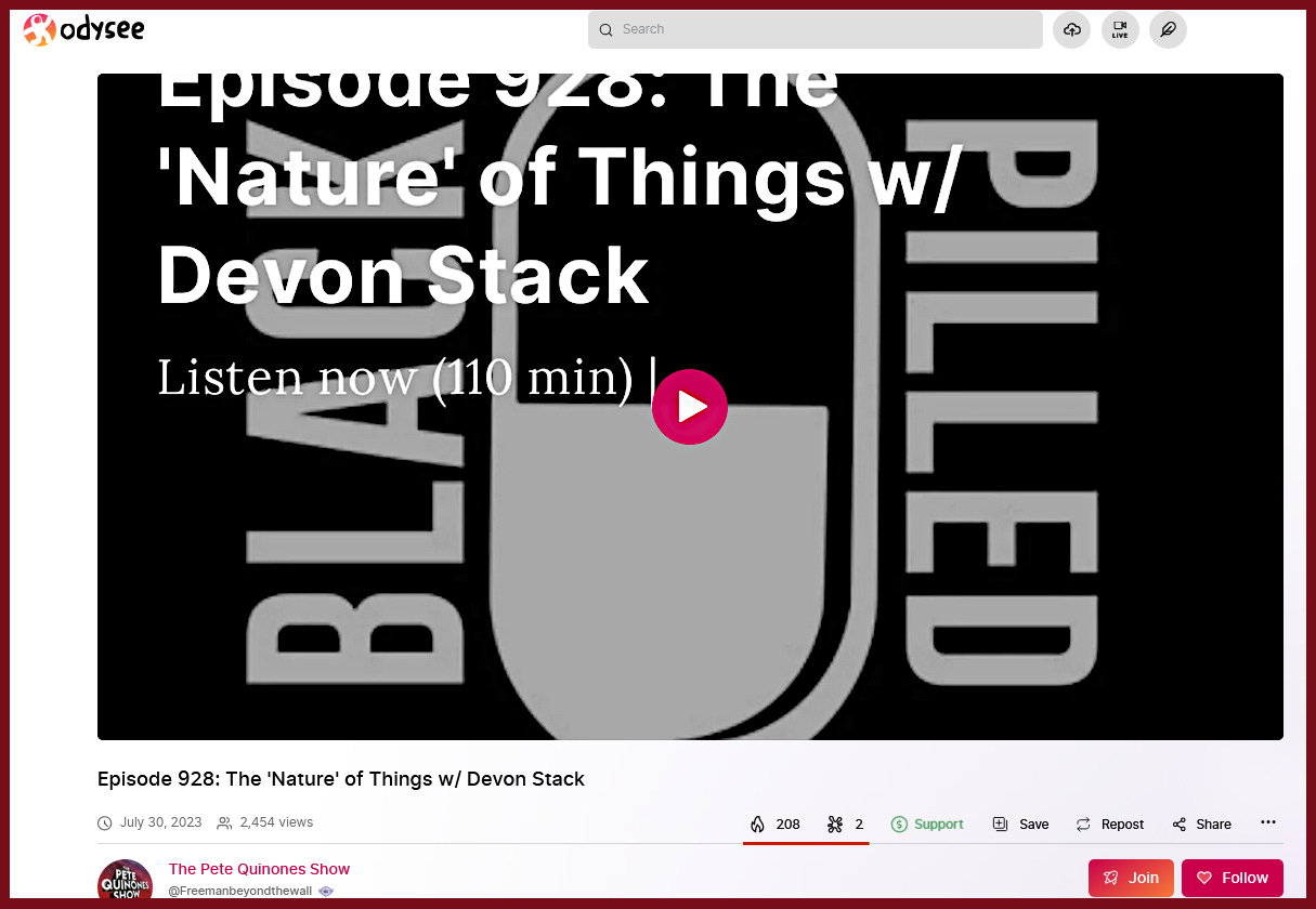 Black Pilled Devon last video was lost by Odysee and so Devon sort-of re-did it, covering subject towards end .. same video link is good, found on my Sunday's Post (archived, see PS for full URLs.), ..