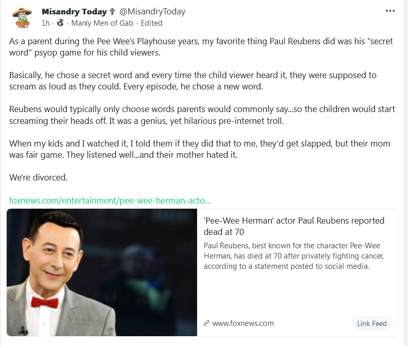 One of - if not the - best kids show on TV .. Pee Wee’s Playhouse. There was some double meaning aspects which made it interesting for child-care providers who were taking a break with the children.