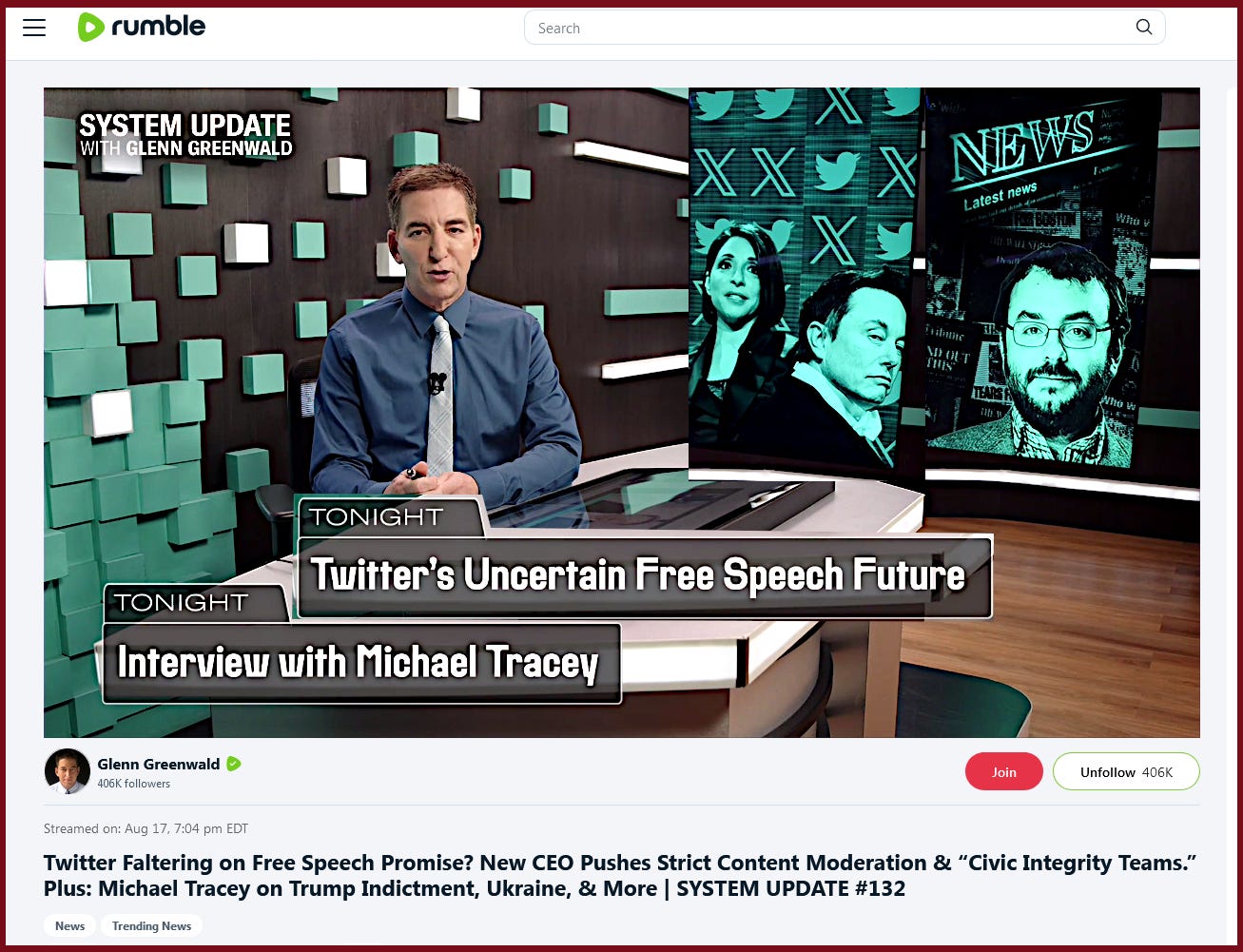 “Twitter Faltering on Free Speech Promise? New CEO Pushes Strict Content Moderation & “Civic Integrity Teams.” Plus: Michael Tracey on Trump Indictment, Ukraine, & More | SYSTEM UPDATE #132”