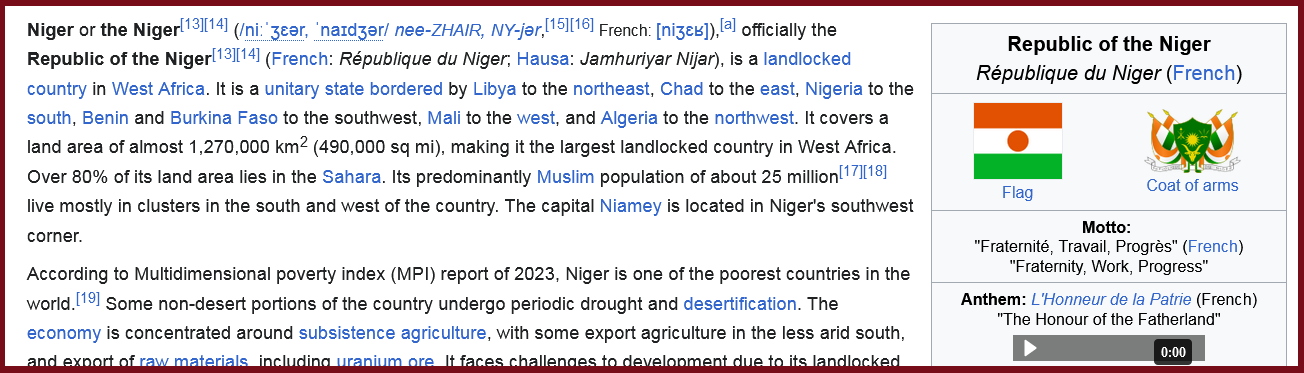 I want to point-out the recent problems of Boko Haram (archived) that Niger (archived) ..