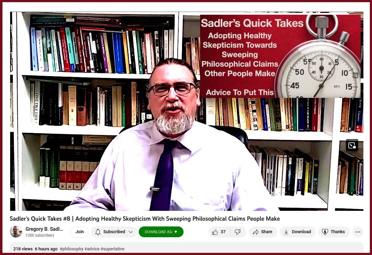 “Sadler's Quick Takes #8 | Adopting Healthy Skepticism With Sweeping Philosophical Claims People Make”