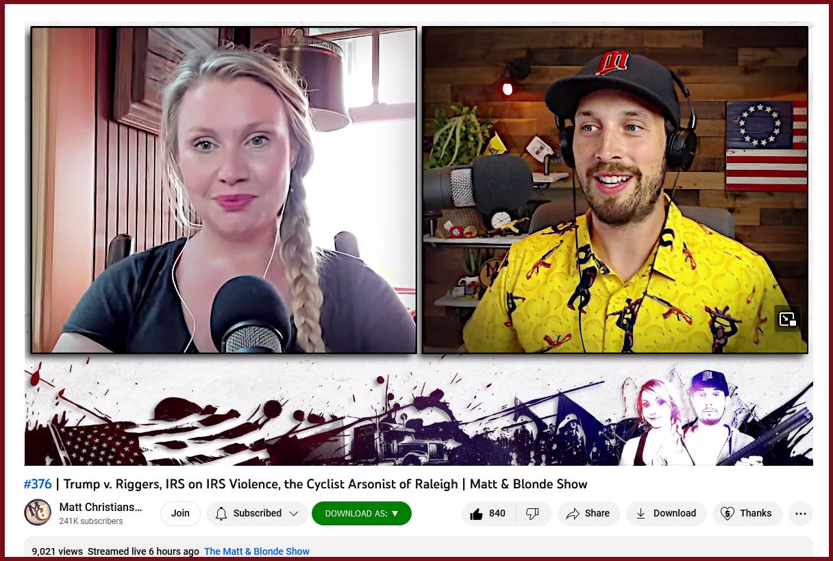 “#376 | Trump v. Riggers, IRS on IRS Violence, the Cyclist Arsonist of Raleigh | Matt & Blonde Show”
