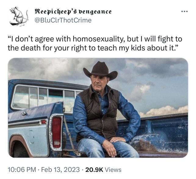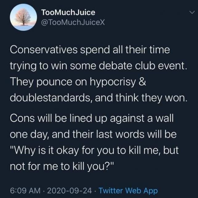 This morning I was considering some of these videos and aspects of them, and I decided a possible good way to convey in rhetoric the question or task of asking the ready (you, dear reader) to imagine the person or people who have decided that removing services from a person because of their Speech seems okay .. reasonable even.