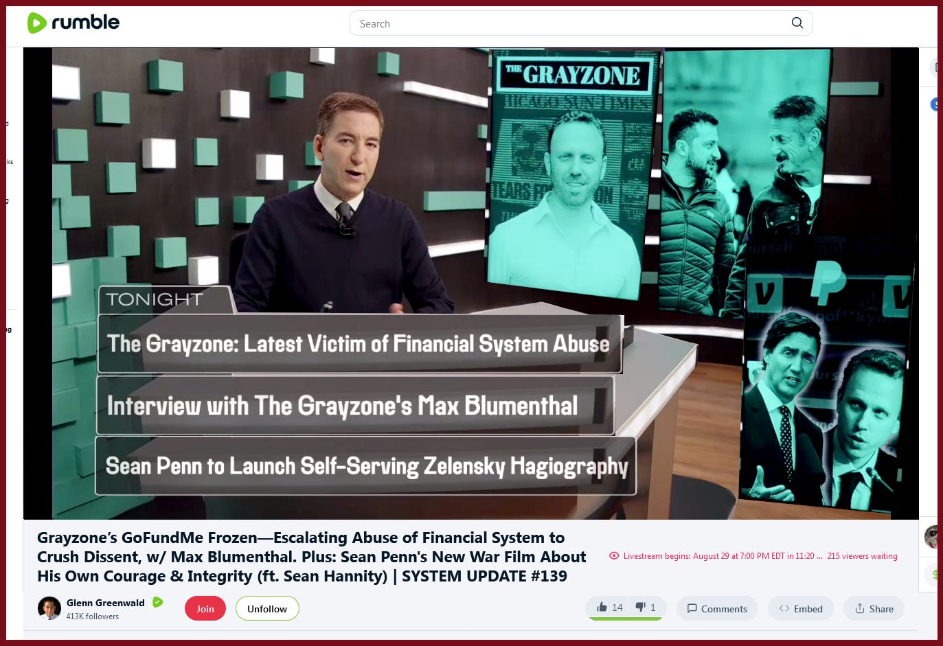“LIVE - Grayzone’s GoFundMe Frozen—Escalating Abuse of Financial System to Crush Dissent, w/ Max Blumenthal. Plus: Sean Penn's New War Film About His Own Courage & Integrity (ft. Sean Hannity) | SYSTEM UPDATE #139”