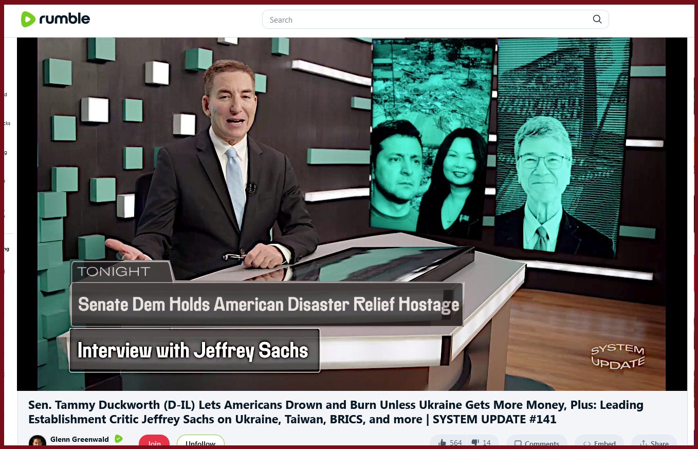 “Sen. Tammy Duckworth (D-IL) Lets Americans Drown and Burn Unless Ukraine Gets More Money, Plus: Leading Establishment Critic Jeffrey Sachs on Ukraine, Taiwan, BRICS, and more | SYSTEM UPDATE #141”