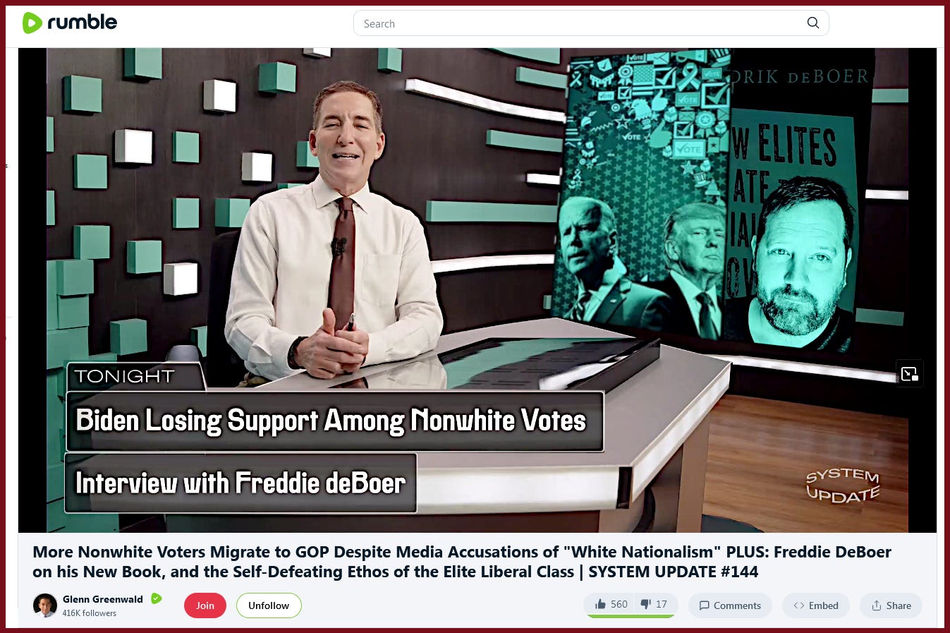 “More Nonwhite Voters Migrate to GOP Despite Media Accusations of "White Nationalism" PLUS: Freddie DeBoer on his New Book, and the Self-Defeating Ethos of the Elite Liberal Class | SYSTEM UPDATE #144”