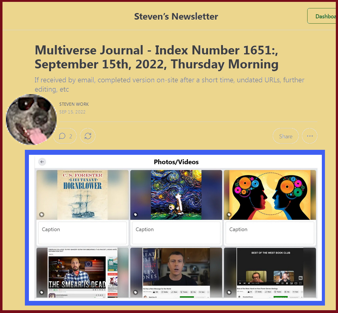 [Current popular Memes and Images - which reflect common thoughts of many - may be found on the SubStack version – Facebook Witches will/have punished my sharing of such.]
