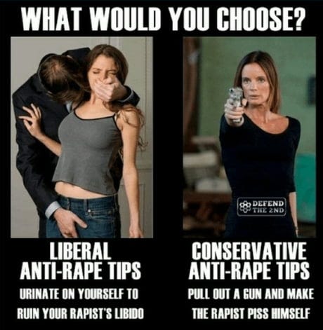 .. Later 'if you were a woman how would you like to be raped?', 'but I am not a woman! what are you calling me!?' punches questioner, perhaps.