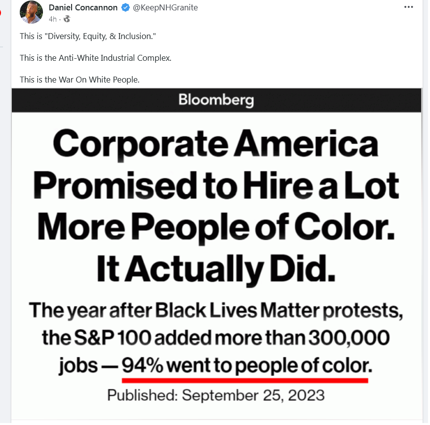 .. the corpDragons directed they must support white Christian man-father Genocide and we see that recent hires in country had only 6 percent white [men] – and so destroying families and hope for womanhood & children, women which continue to become more vile and hyper-empowered tools of Evil and horror, children are raised by putrid mind-raping delusional-psychic lying horrors ..