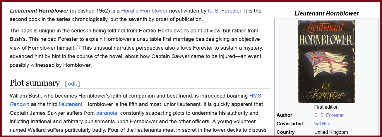I picked-up where I left-off in my audio-book of 'Lieutenant Hornblower' (Archived: https://archive.ph/1G7qS ) ..