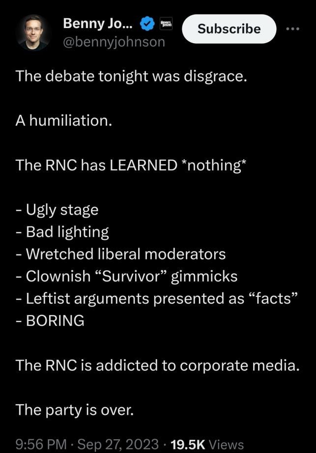 “Republican Debate #2 Was Dreary, Undignified, & Unwatchable. PLUS: Outlook Significantly Worsens for Ukraine (and US Taxpayers) | SYSTEM UPDATE #152”