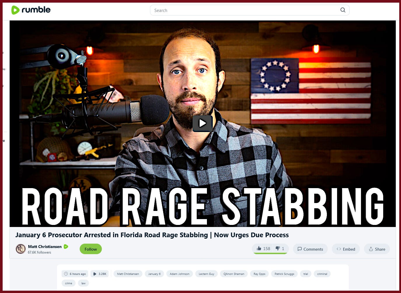 [ https://rumble. com/v3m07t5-january-6-prosecutor-arrested-in-florida-road-rage-stabbing-now-urges-due-p.html]