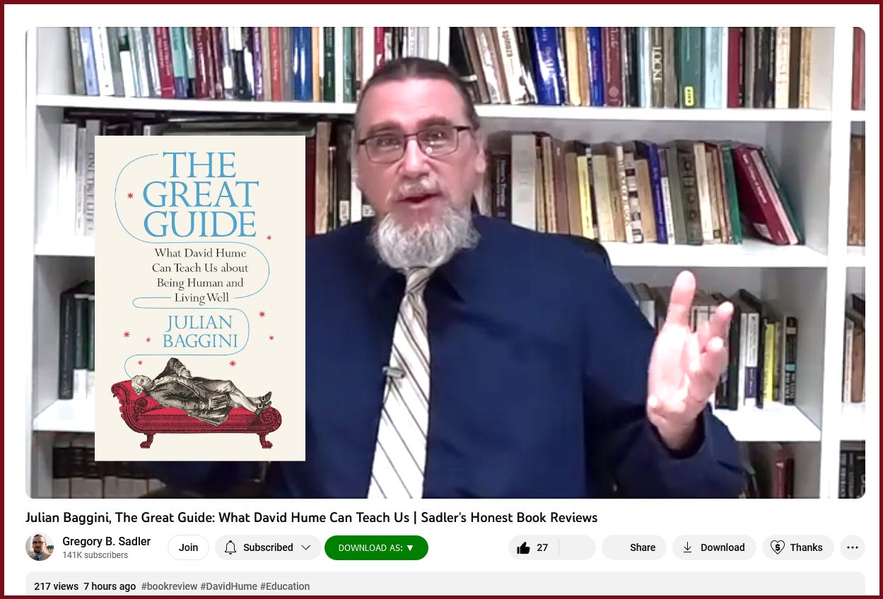 “Julian Baggini, The Great Guide: What David Hume Can Teach Us | Sadler's Honest Book Reviews”