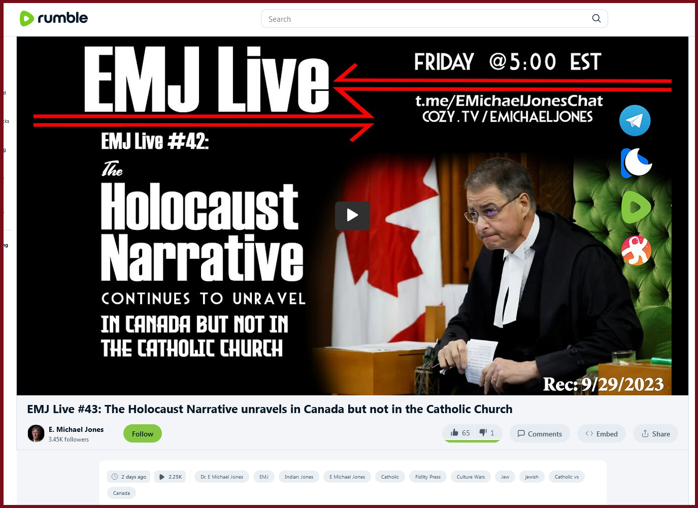 “EMJ Live #43: The Holocaust Narrative unravels in Canada but not in the Catholic Church”