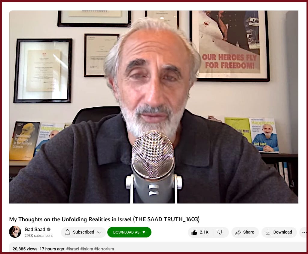 (More comments as I listen below for Gad Saad’s vomit-filled video following.), ..