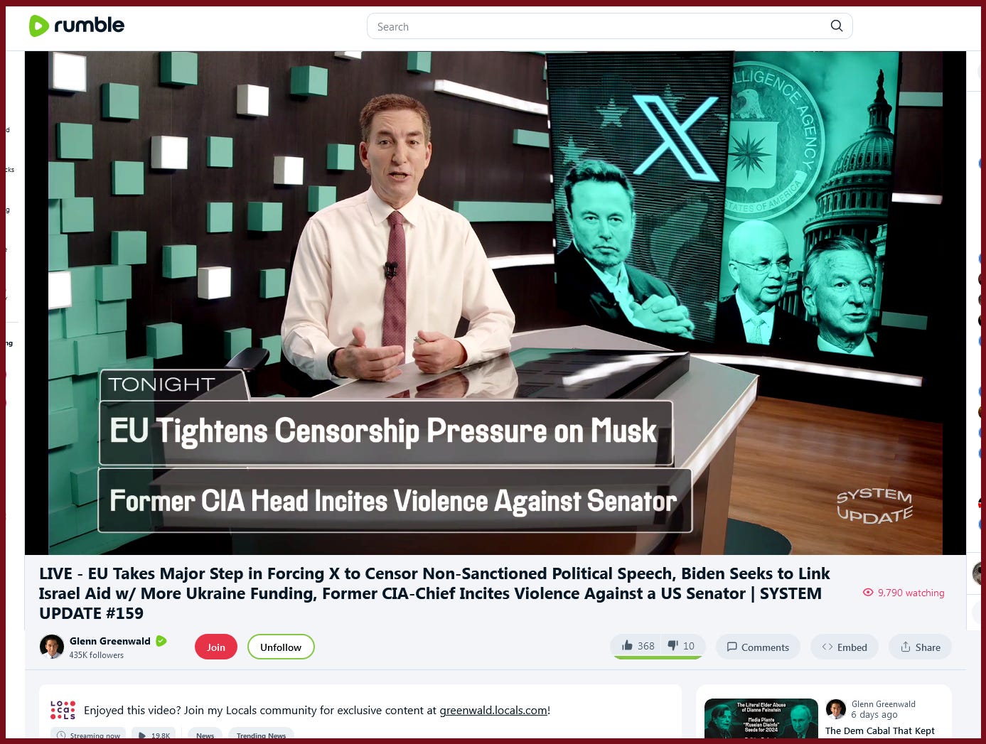 “LIVE - EU Takes Major Step in Forcing X to Censor Non-Sanctioned Political Speech, Biden Seeks to Link Israel Aid w/ More Ukraine Funding, Former CIA-Chief Incites Violence Against a US Senator | SYSTEM UPDATE #159”