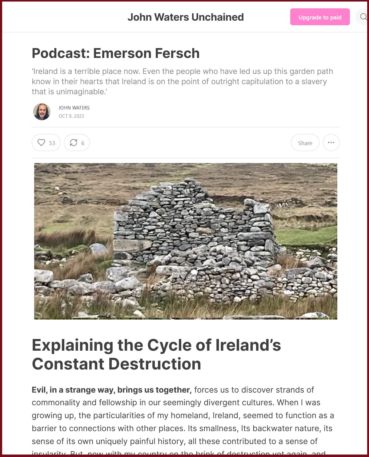 'Ireland is a terrible place now. Even the people who have led us up this garden path know in their hearts that Ireland is on the point of outright capitulation to a slavery that is unimaginable.' - Article