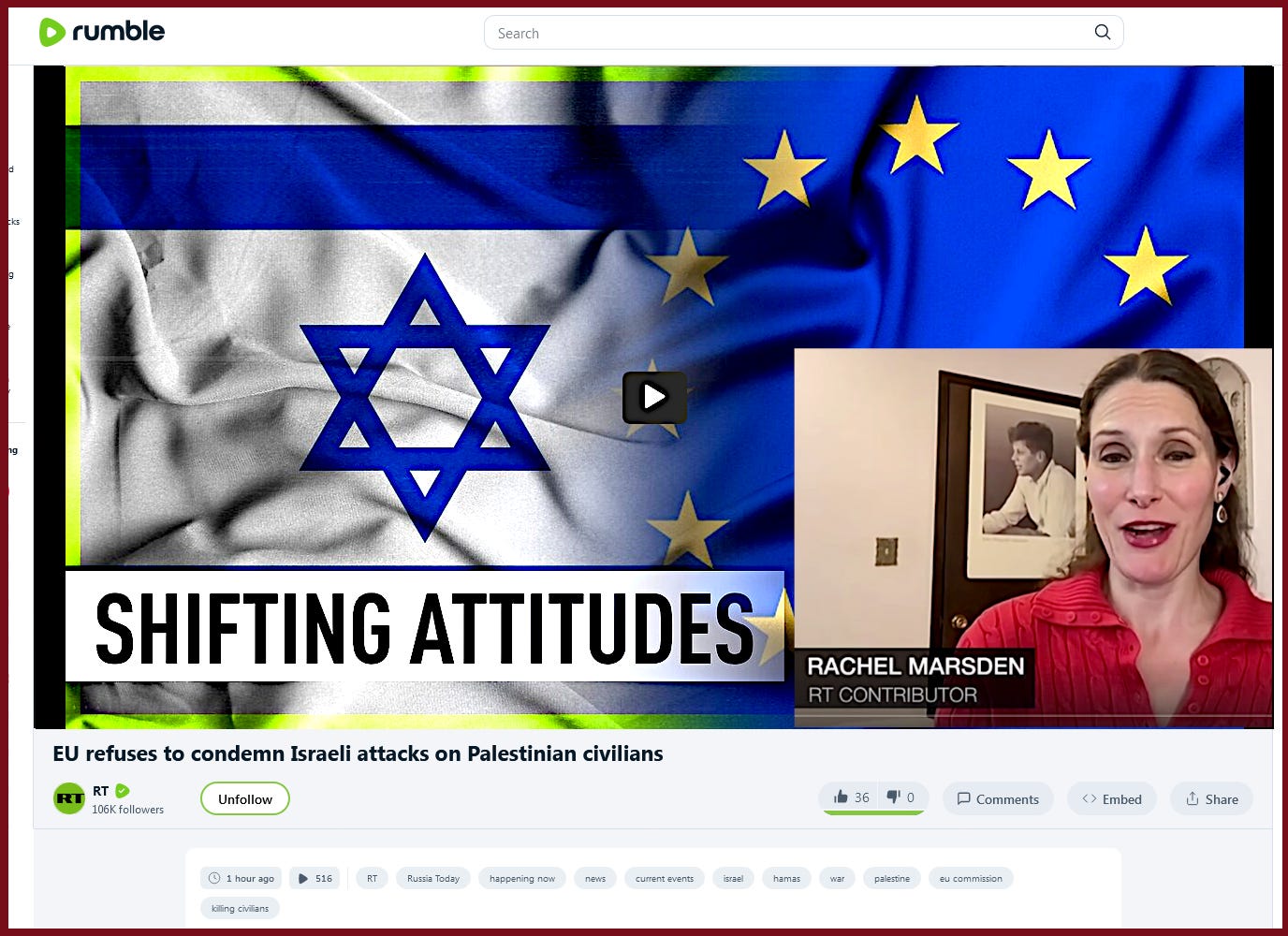 Here is a good example of both RT and Rumble that is suppressed through much of the Western world by mind-raping Witches and war-criminal, war-crimes, and genocidal supporters of israel and this GreatSatan Empire., ..