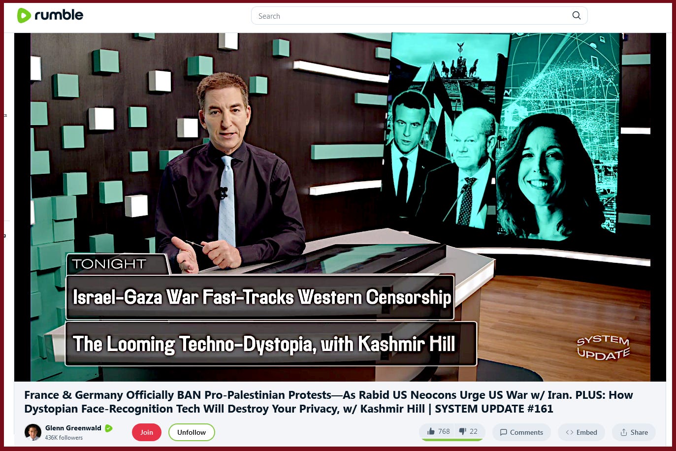 “France & Germany Officially BAN Pro-Palestinian Protests—As Rabid US Neocons Urge US War w/ Iran. PLUS: How Dystopian Face-Recognition Tech Will Destroy Your Privacy, w/ Kashmir Hill | SYSTEM UPDATE #161”