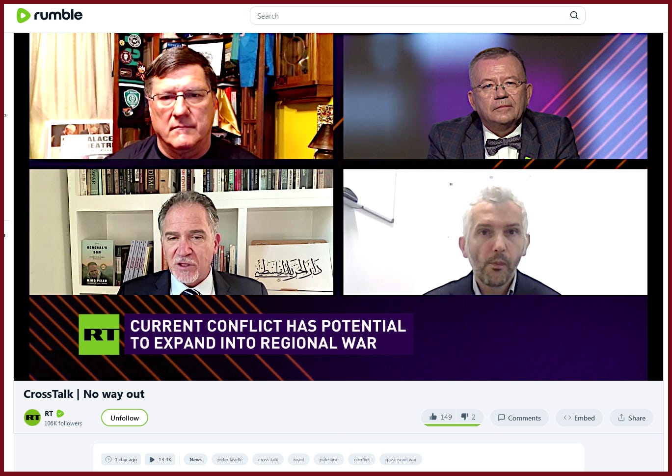 Much good sense in a small amount of video time - CrossTalking with Miko Peled, Scott Ritter, and Triestino Mariniello.