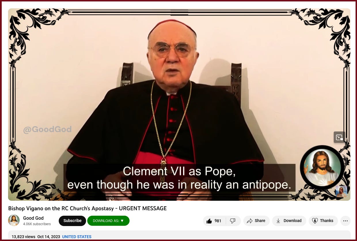 “Bishop Vigano on the RC Church's Apostasy - URGENT MESSAGE”