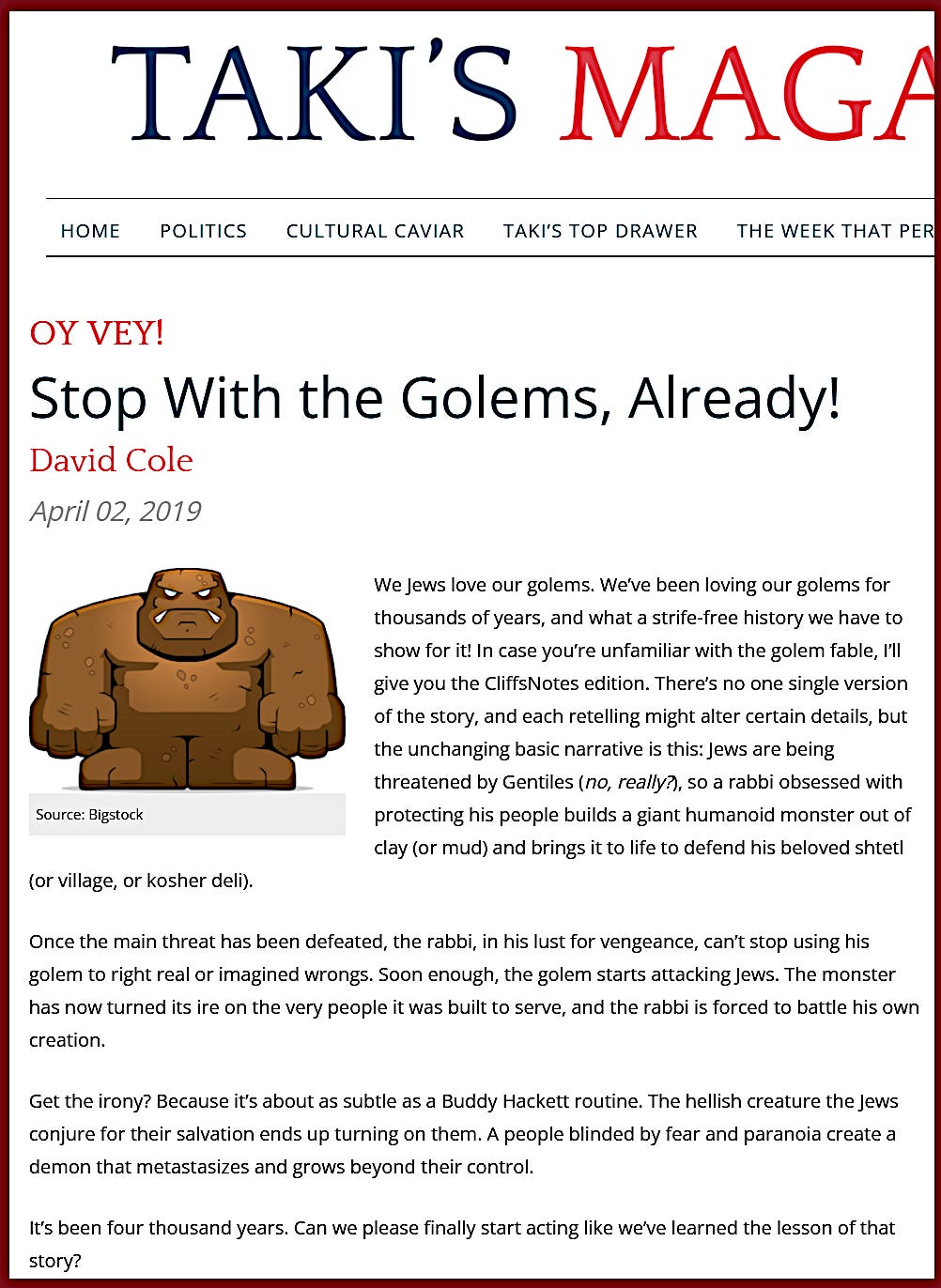 But Perhaps this Golem – this and other Western soul-dead nations ruled by Satanic Witches and their Puppets – fully supporting genocidal Zionists and other Talmud-Sicken Evil Witch Satanic Goals .. might Turn on them .. as we all Awaken. I Ask again – although God Demands Love and not Death, is it Loving to ask if a good Zionist is a Reformed-Repented or dead Zionist – publicly killed as examples of Satanic Minions wages of Sin? ..