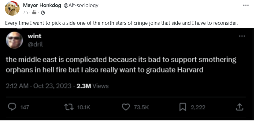 Well, take a look at how the Narrative is designed to mind-rape, to warp the facts, to gaslight and Demonically-Program others into supporting genocide of more and more ..