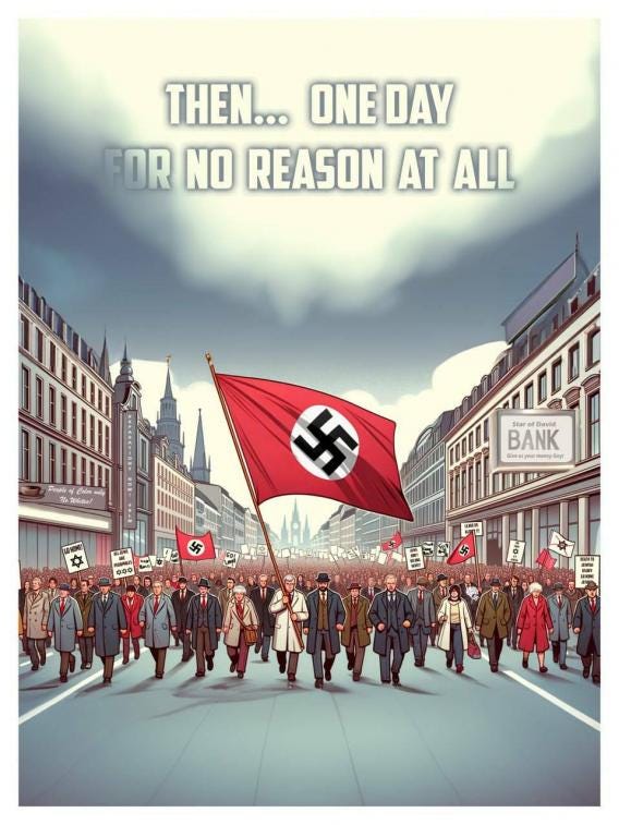 The most impactful aspect seem to be the SubStack included image of the warning my Pat Buchanan and the two panel political cartoon of the older boy in 2008 surrounded by devastation and dead family to today a Hamas Fighter – God Bless all the real versions – may they kill and kill the Talmud-Sickened Satanic Witches and all active supporter of Genocidal Zionist .. until all genocidal Zionists and active supporters and enablers and all the older women in their families are dead or Repented, .. and so this morning I added it to the Facebook images