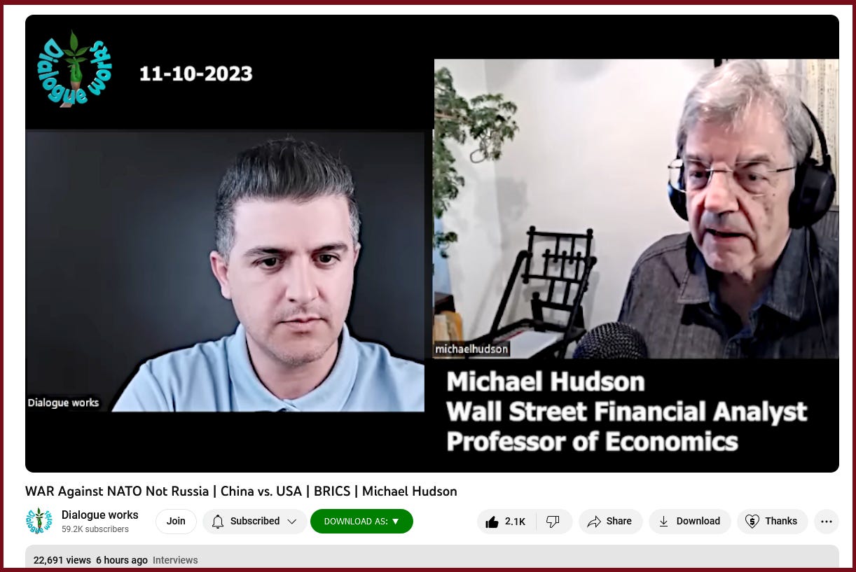 I would have listen to this already but that Arab League meeting had taken away that time – I include knowing the Michael Hudson is the only serious economic man who puts history and rational aspects to the insane monetary system being used to destroy and genocide the West and others., ..