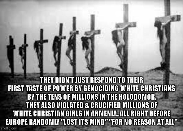 Once the history of powerful Jews is know to some degree - it is a wonder they are not all hanged to death in Public .. genocide of Christians in Holodomor, the below, and those from that time period suddenly ‘went crazy?’ with 300,000 Jews collected into work-camps - isolated with other peoples that were (and still are) threats to Western society and Sanity.