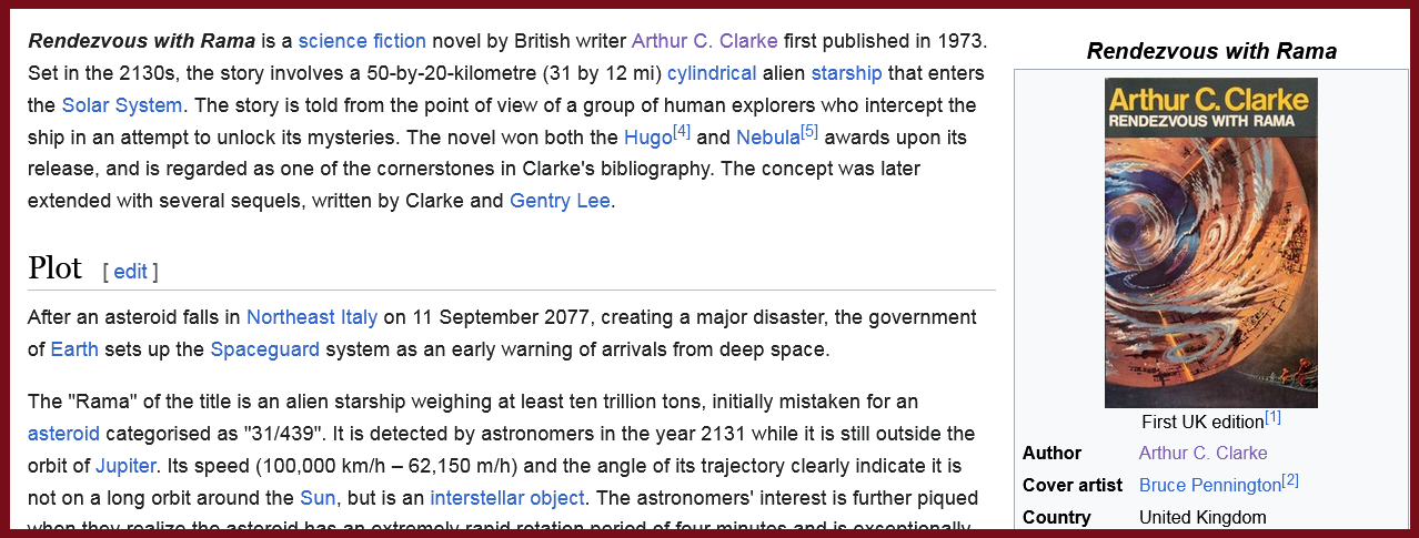 Yesterday I posted a video related to the possible sci-fi movie based on the book 'Rendezvous with Rama' (Archived: https://archive.is/ZCsnz ) by 'Arthur C. Clarke' ( Archived: https://archive.is/F9UPC ), ..