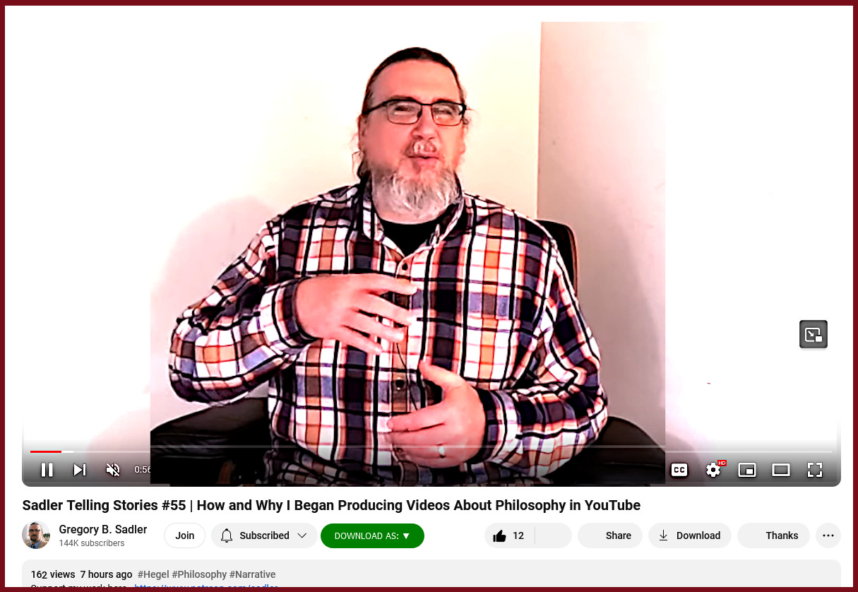 “Sadler Telling Stories #55 | How and Why I Began Producing Videos About Philosophy in YouTube”