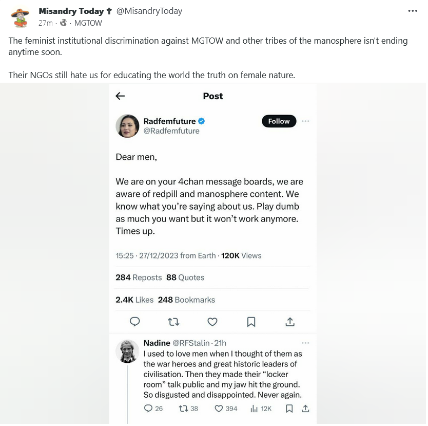 Many readers have not read this book, so my reference to the Leftie-cnt review yesterday – with white men's Western society False-Witnessing, as such Witches have been doing since at least the 1960's and the Replacement by crippling white men – filling them with self hate and loathing, with Sickened modern Western Womanhood crushing our testicles, Sucking Satan's Cock and marrying the Gov – enslaving men, murdering babies, mutilating children, destroying fathers and decent men, etc.