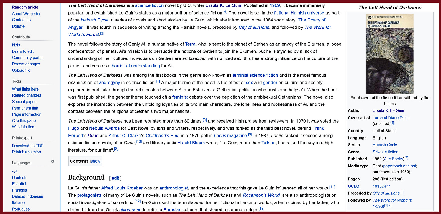 It possible I would like to change the minds of readers who think Sci-Fi is pandering vomit, when here and other authors are able to alter the world to focus on a topic and gain reflections, like 'Left Hand of Darkness' (archived https://archive.is/vJZf1 ) ..