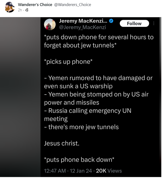 The mind-raping Western reporting has yet to report that the Houthis are not attacking all ships, only those that are owned by israel, USA, or other Genocidal Satanic Zionists supporting the constant murders.