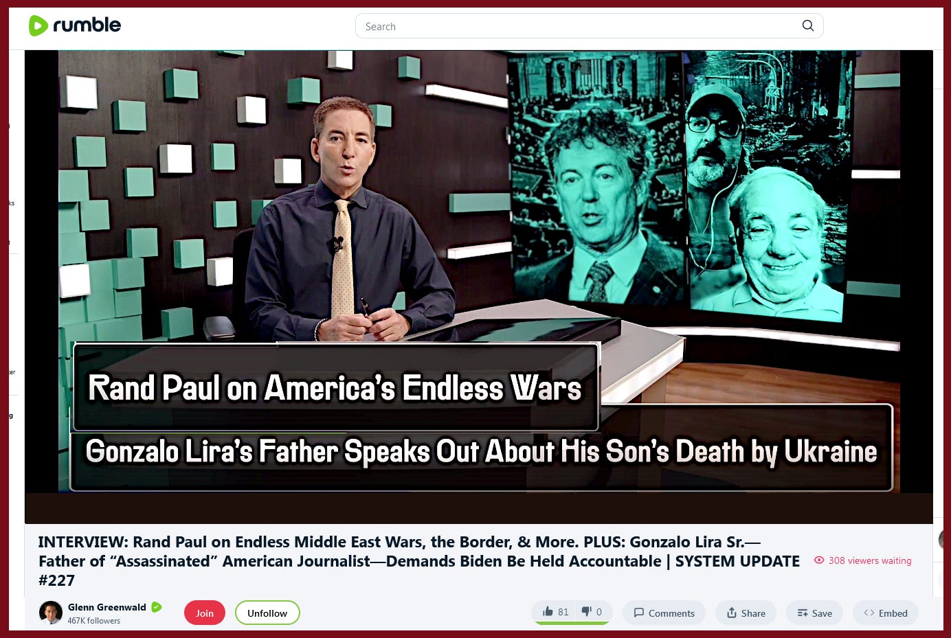 “INTERVIEW: Rand Paul on Endless Middle East Wars, the Border, & More. PLUS: Gonzalo Lira Sr.—Father of “Assassinated” American Journalist—Demands Biden Be Held Accountable | SYSTEM UPDATE #227”