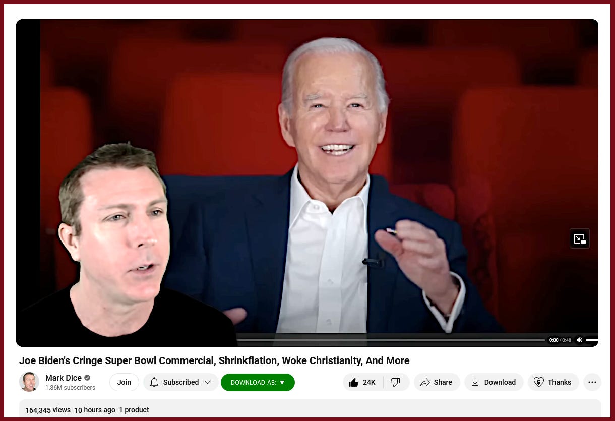 “Joe Biden's Cringe Super Bowl Commercial, Shrinkflation, Woke Christianity, And More”