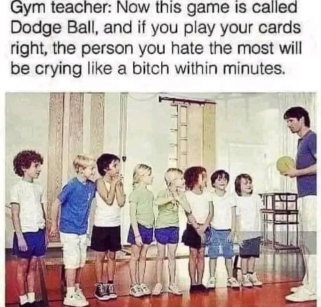 Every boy in gym class (we has sex segragated class) except a few loved Dodge Ball, as did I, and if I could still move like I used too - would today. Any blood (nose, lip) was chearing win - and you learned to take hits and continue on and not to fear such.
