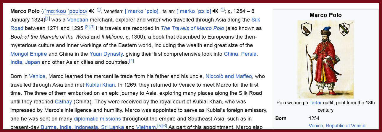 [Later] I have been listening while editing and this is interesting enough I want them to use more examples and details. It have been thinking about history and how standards and tastes effected individual thinking and actions, the societies and so their actions and non-actions, and how such has been shared across previously non-interacting cultures – such as explores such as 'Marco Polo' (Archived: https://archive.is/Kbocr ).