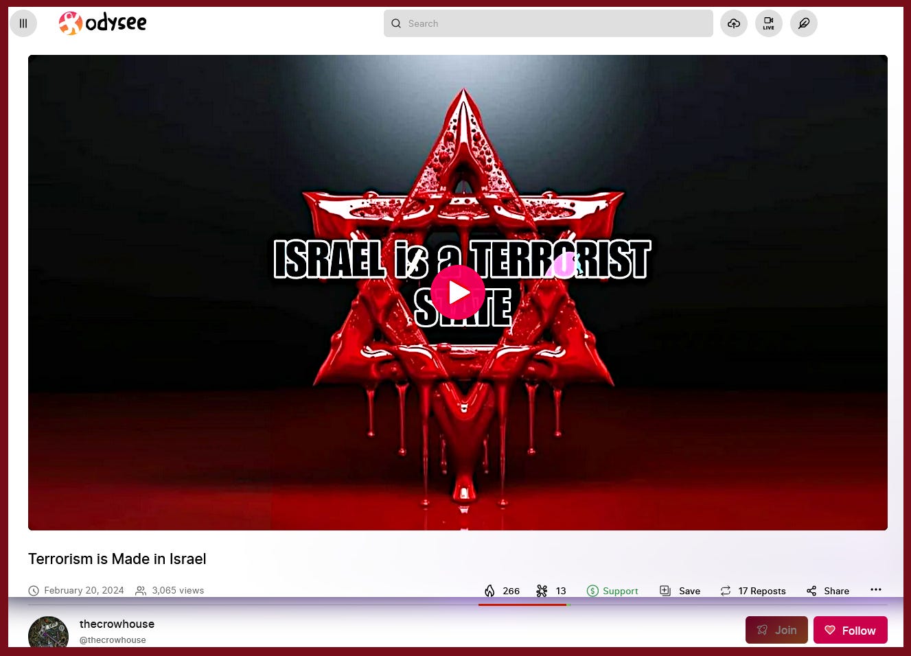 https://odysee.com/@thecrowhouse:2/Terrorism-is-Made-in-Israel:7
